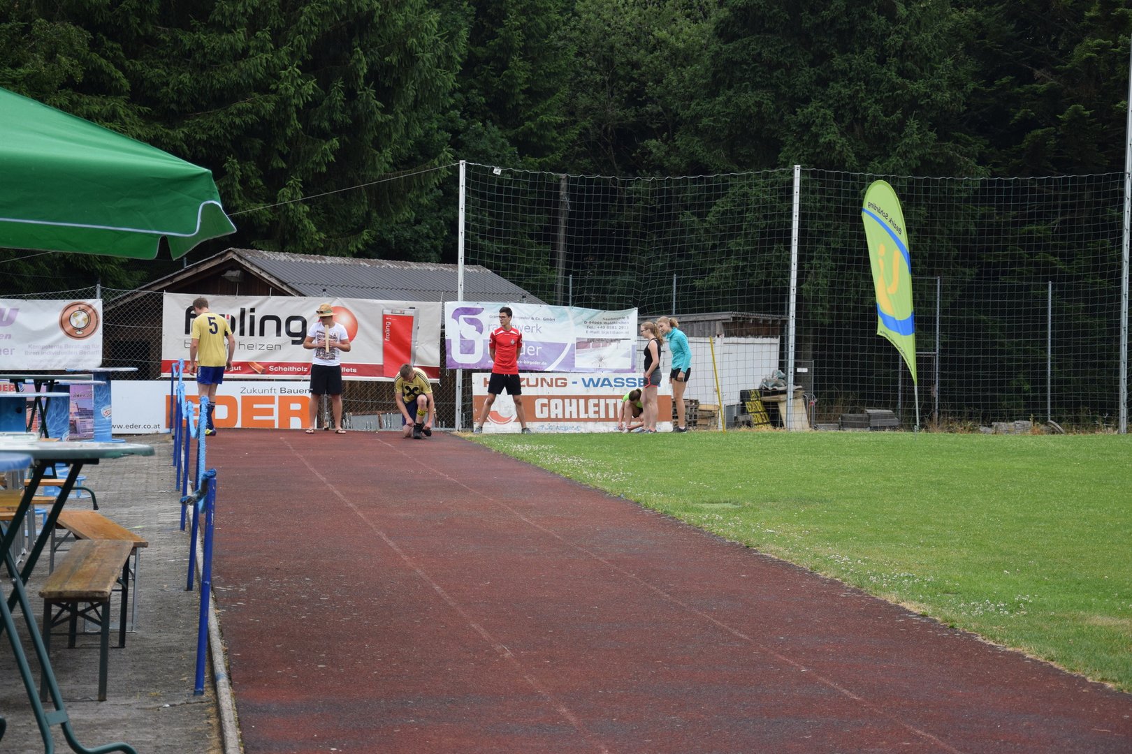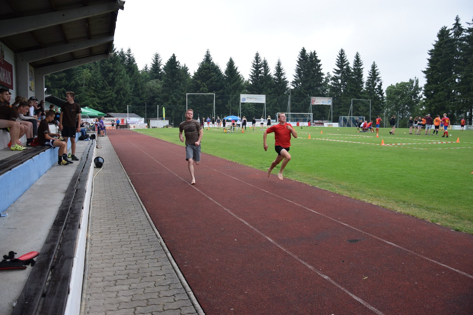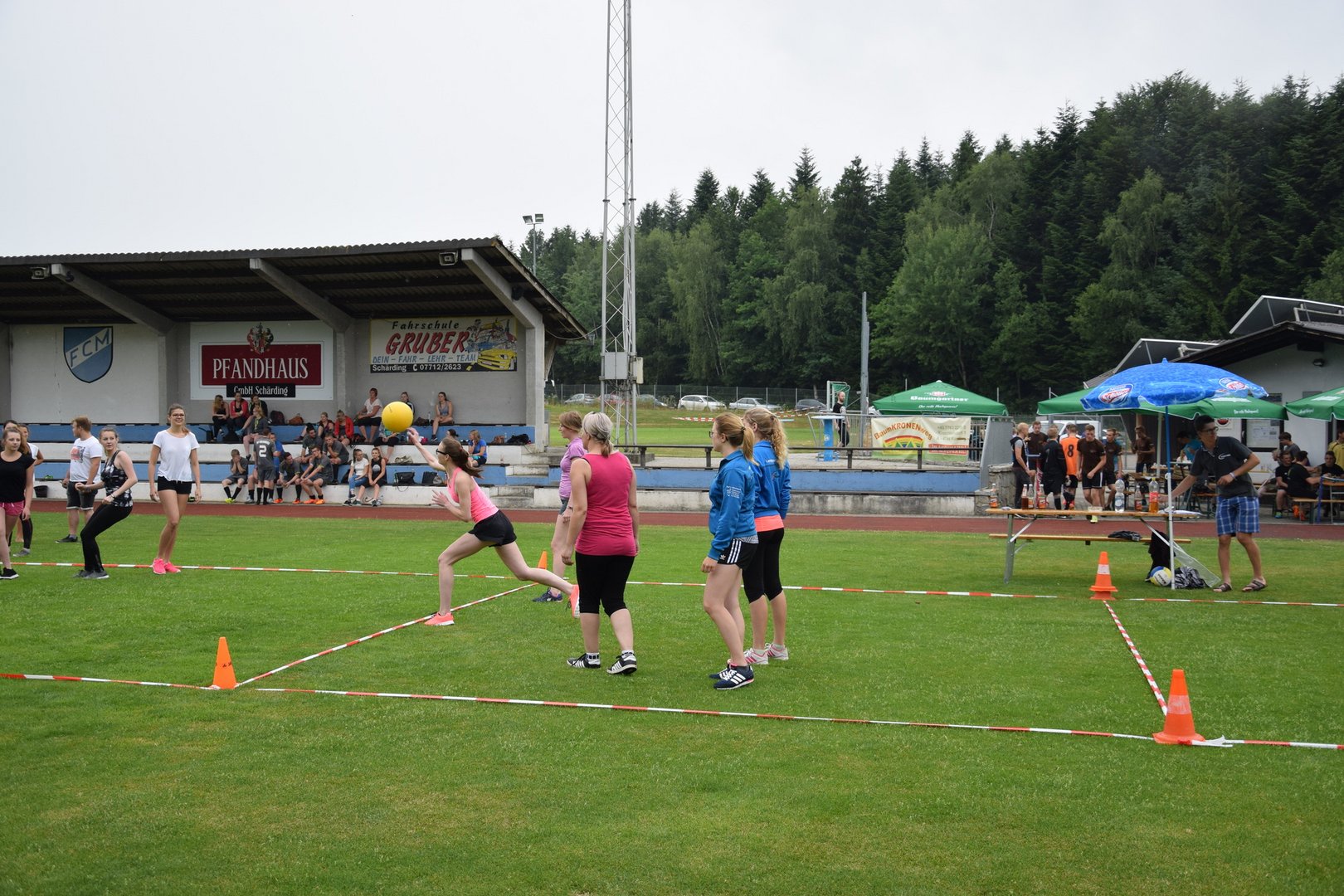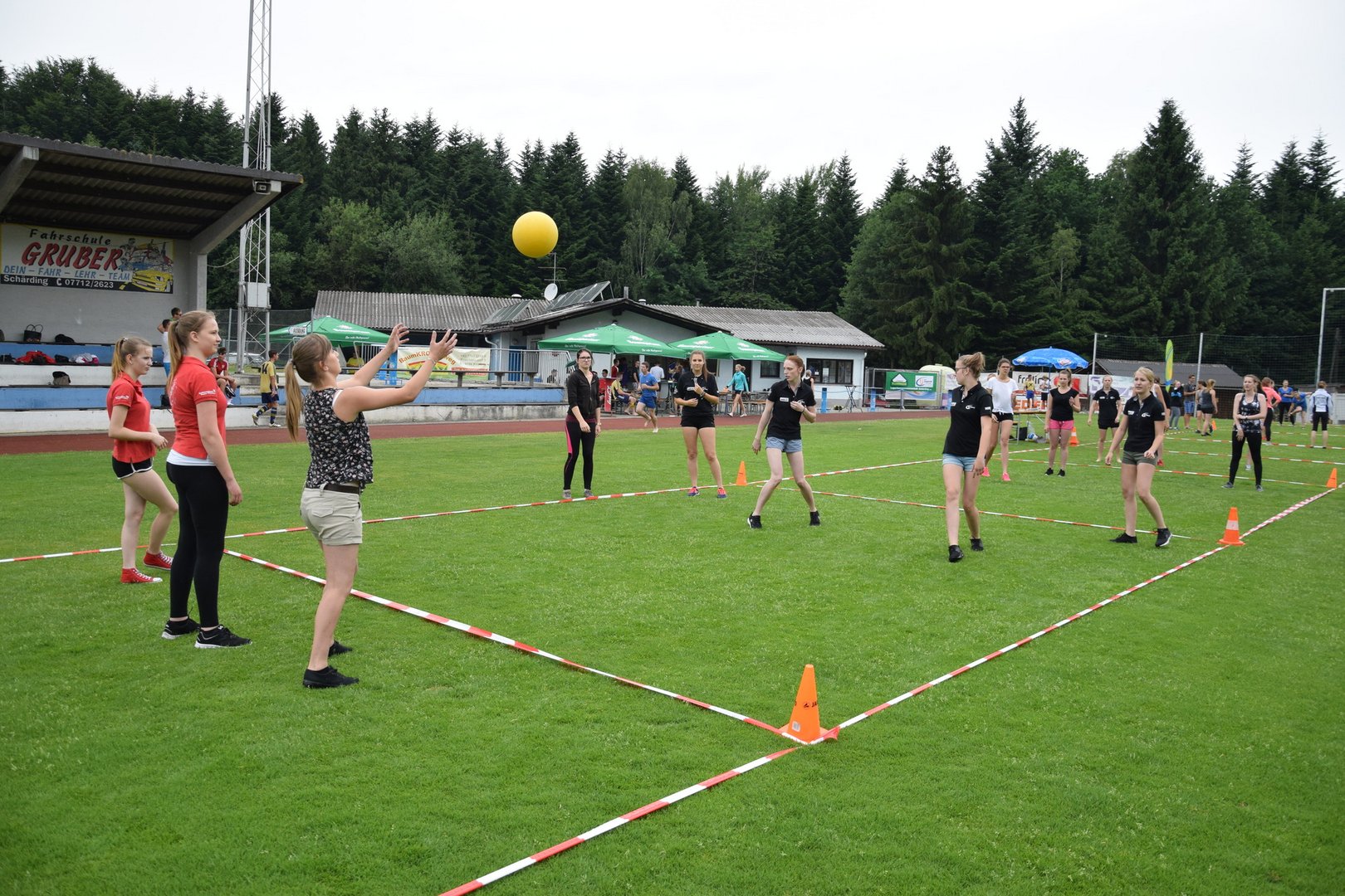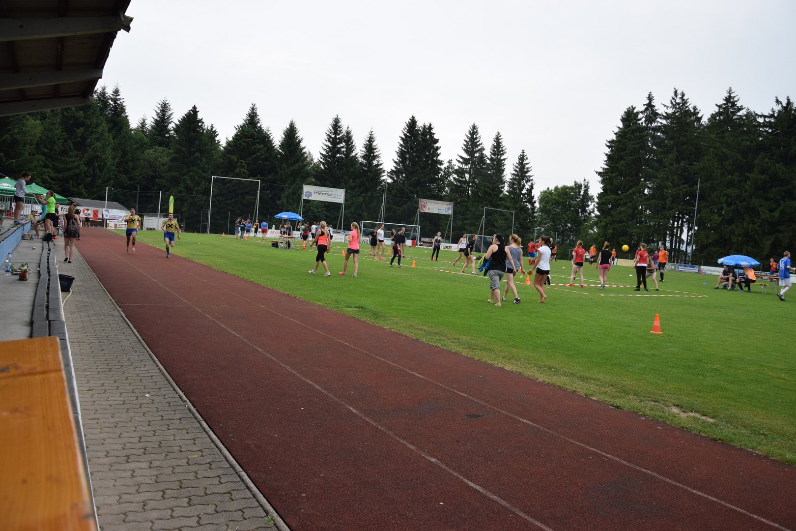 Rund 90 Leichtathleten, 11 Fußballmannschaften und 9 Völkerball Gruppen kämpften letzten Sonntag um die besten Plätze. Dabei ließen sie sich auch von kurzen Regenschauern und kühlen Temperaturen nicht abhalten.